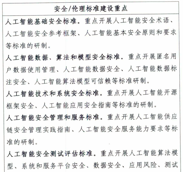 1.安全與隱私保護(hù)標(biāo)準(zhǔn)。包括基礎(chǔ)安全,數(shù)據(jù)、算法和模型安全,技術(shù)和系統(tǒng)安全,安全管理和服務(wù),安全測(cè)試評(píng)估,產(chǎn)品和應(yīng)用安全等六個(gè)部分。