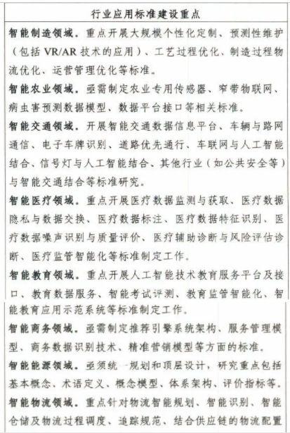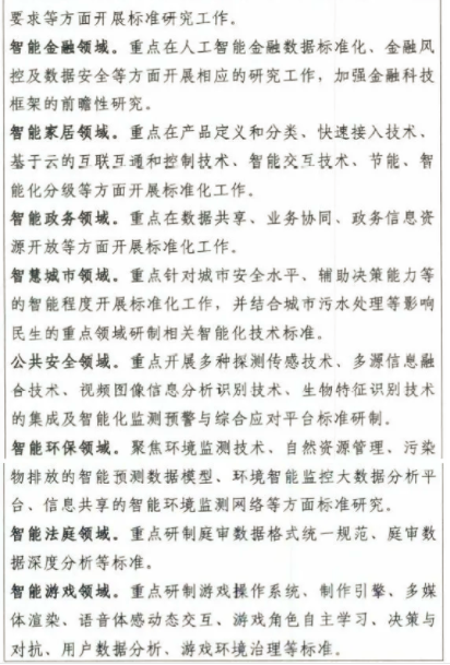到2023年,初步建立人工智能標(biāo)準(zhǔn)體系,重點(diǎn)研制數(shù)據(jù)、算法、系統(tǒng)、服務(wù)等重點(diǎn)急需標(biāo)準(zhǔn),并率先在制造、交通、金融、安防、家居、養(yǎng)老、環(huán)保、教育、醫(yī)療健康、司法等重點(diǎn)行業(yè)和領(lǐng)域進(jìn)行推進(jìn)。建設(shè)人工智能標(biāo)準(zhǔn)試驗(yàn)驗(yàn)證平臺(tái),提供公共服務(wù)能力。