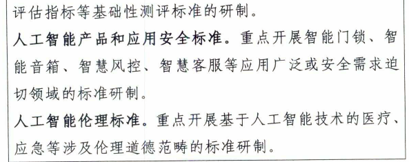 人工智能產(chǎn)品和應(yīng)用安全標(biāo)準(zhǔn)主要是為保障人工智能技術(shù)、服務(wù)和產(chǎn)品在具體應(yīng)用場(chǎng)景下的安全,可面向智能門(mén)鎖、智能音響、智慧風(fēng)控、智慧客服等應(yīng)用成熟、使用廣泛或安全需求迫切的領(lǐng)域進(jìn)行標(biāo)準(zhǔn)研制。